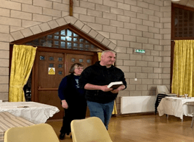 ‘It was a privilege to gather at St Margaret’s Hall with Fr Stephen for a special Mass, celebrated just for members and friends of our local SPRED family. In John’s Gospel reading we heard the story of how Jesus washed the feet of his disciples. In the time of Jesus it was the duty of house servants to wash the dusty feet of guests. However, although he was seen as a teacher and master, Jesus took on the subordinate role of servant by performing this work. In a meaningful gesture, Hugh embodied the humbling actions of Jesus by removing his jacket and tying it round his waist like an apron to emphasise the lowly task. Along with the words of Scripture read out by Fr Stephen, this was a powerful reminder of the value and significance of serving each other.’