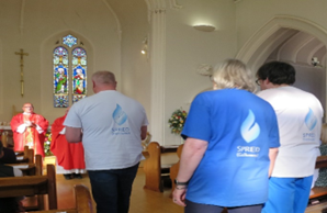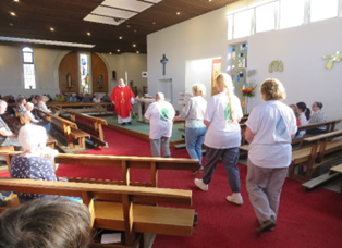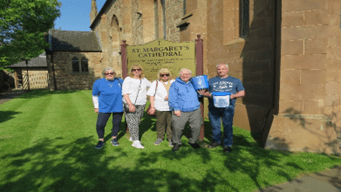 St Margaret’s to attend the 6 pm Vigil Mass. We strolled through the Gardens in front of the South Ayrshire Council buildings, passed the Bus Station and headed along Sandgate. We crossed over Ayr Bridge and made our way around King Street. We arrived in plenty of time so we headed into the Church Hall to cool down and have a drink of diluting juice. We were joined at Mass by a couple of other people, making it 7 members of the SPRED Family that took some part in this event. Fr David gave us a lovely welcome and we took part in the procession of gifts. After Mass we handed out some flyers encouraging people to find out more about SPRED and even volunteer their talents. We were allowed to have a collection outside of the Church and raised £77. A big SPRED thank you to Fr David and the Parishioners of St Margaret’s for their warm welcome and generosity.