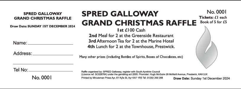 We are very excited about our upcoming Grand Summer Raffle, with chances to win several brilliant prizes to raise money for SPRED Galloway.